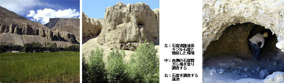 今回の現地調査ではヴァクシュ川流域の山稜地帯に残る石窟遺跡群、さらにはパミール高原の南端、ワハン回廊へとつながる地域を踏査した。前者は地元研究者のサトリ氏に案内してもらった遺跡であり、ドシャンベから南方約70Kmのジョミン市街から山稜地帯へ北東約20Kmの山中に所在する。このサトリ氏とは在タジク日本大使館の紹介で面識を得ることができた。遺跡は崖面に掘られた石窟群から構成されており、サトリ氏によれば仏教僧院址ではないかとのことであった。保存状態はあまり良くなく、壁画などの痕跡も見られなかった。しかし、ヴァクシュ川に沿って続く街道からわずかに山稜に入り込んだその場所は、僧院が作られるに相応しい場所のように思われた。旧ソ連時代のタジキスタンにおける発掘調査は街道沿いの都城などが主で、街道から少し離れた場所での調査はまだ十分になされていないようである。今後、新たな仏教僧院址が発見される可能性も高いと思われる。