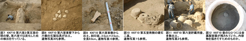 KKF-Xでは第六室から6個の壺が出土する。(KKF-X発掘:図11)全部の配置を図化し、午後にはその中の2個@壺とA壺の取り上げ作業をおこなう。その様子をビデオで撮影した。